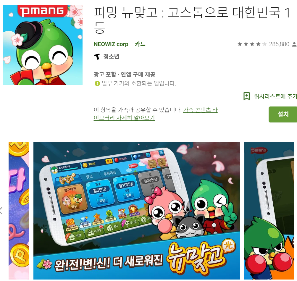 위 링크를 클릭하면 피망뉴맞고 안드로이드 버전을 다운받을 수 있는 페이지로 이동이 가능합니다. 컴퓨터에서 즐기는 피망뉴맞고를 모바일에서 그대로 즐길 수 있는것이지요