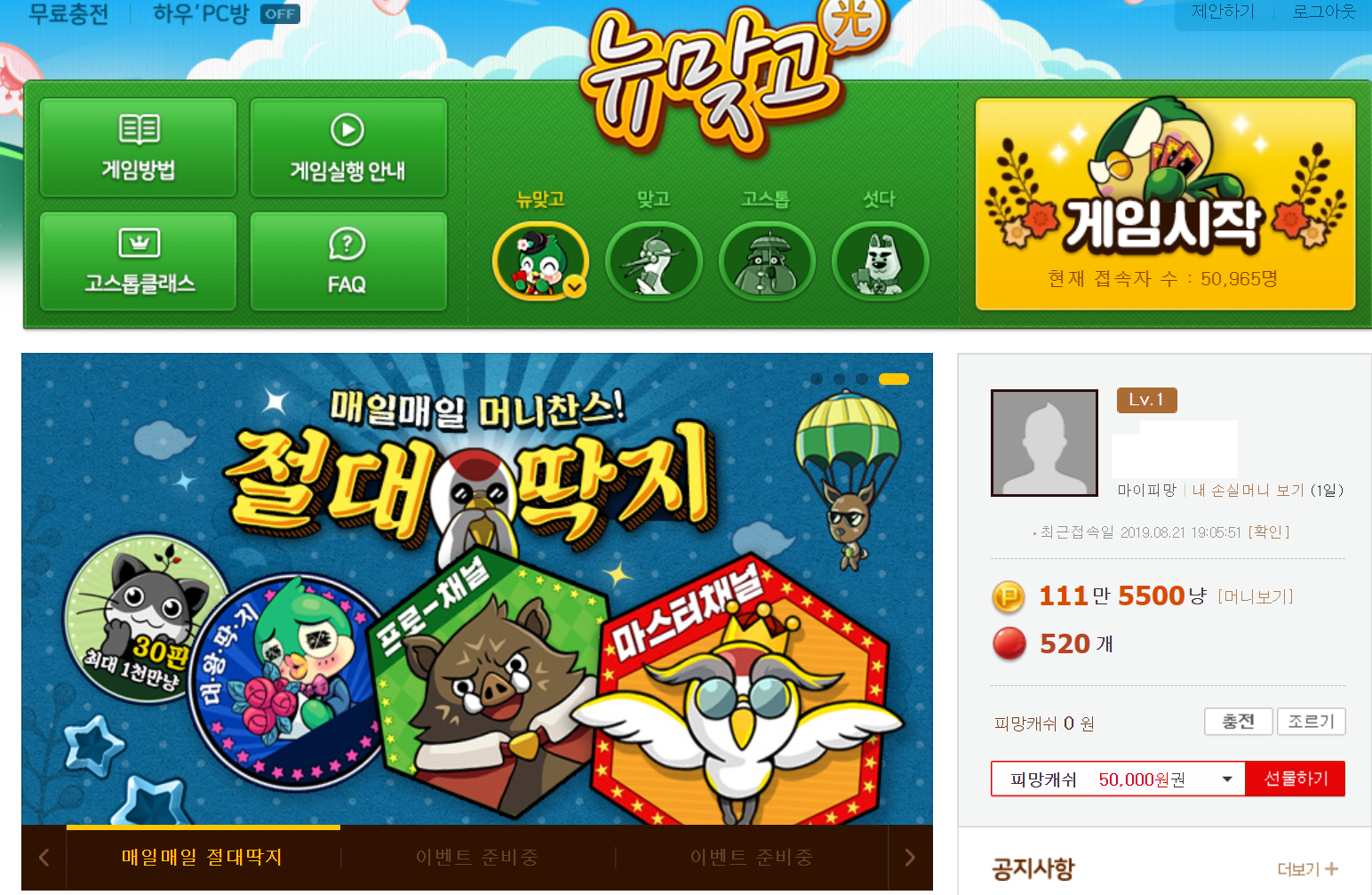 위 링크로 접속을 하시면 피망 뉴맞고 바로가기가 가능합니다. 그 외에도 다음 피망뉴맞고 라는 것이 있기는 하지만 여기에서 논외로 하겠습니다. 결국에는 같은 이야기이기 때문이지요.